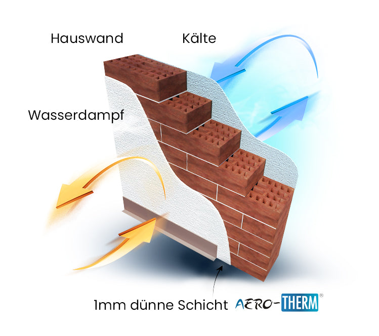 Eine dünne Schicht von nur 1 mm AERO-THERM® reicht aus, um Wärmeverluste zu minimieren, Wände angenehm warm zu halten und das Raumklima zu verbessern, während gleichzeitig Schimmel durch Kondensation verhindert wird. Diese innovative Beschichtung nutzt fortschrittliche Materialien, um die Effizienz der Raumheizung zu maximieren. Durch die Reflexion der Wärme zurück in den Raum wird verhindert, dass sie über Wände und Decken entweicht, was zu einer Einsparung von bis zu 20% der Heizenergie führt.